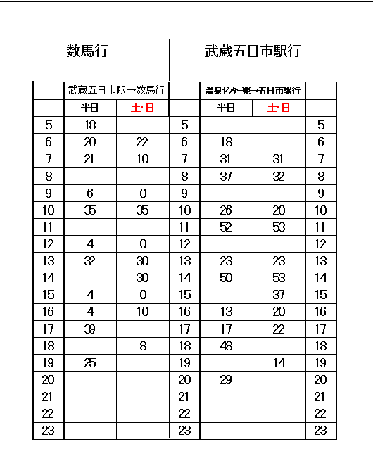 檜原都民の森から数馬の湯までの無料お迎えバス