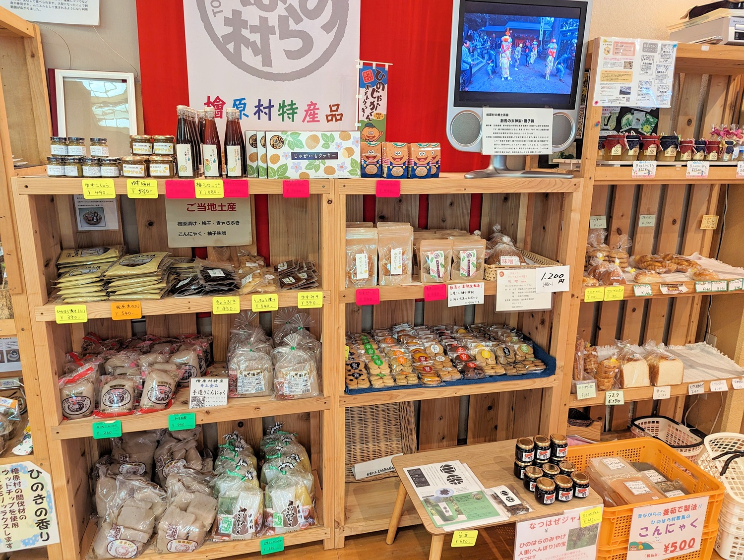 檜原村のこんにゃくや漬物、クッキー、パン、ハチミツなど。